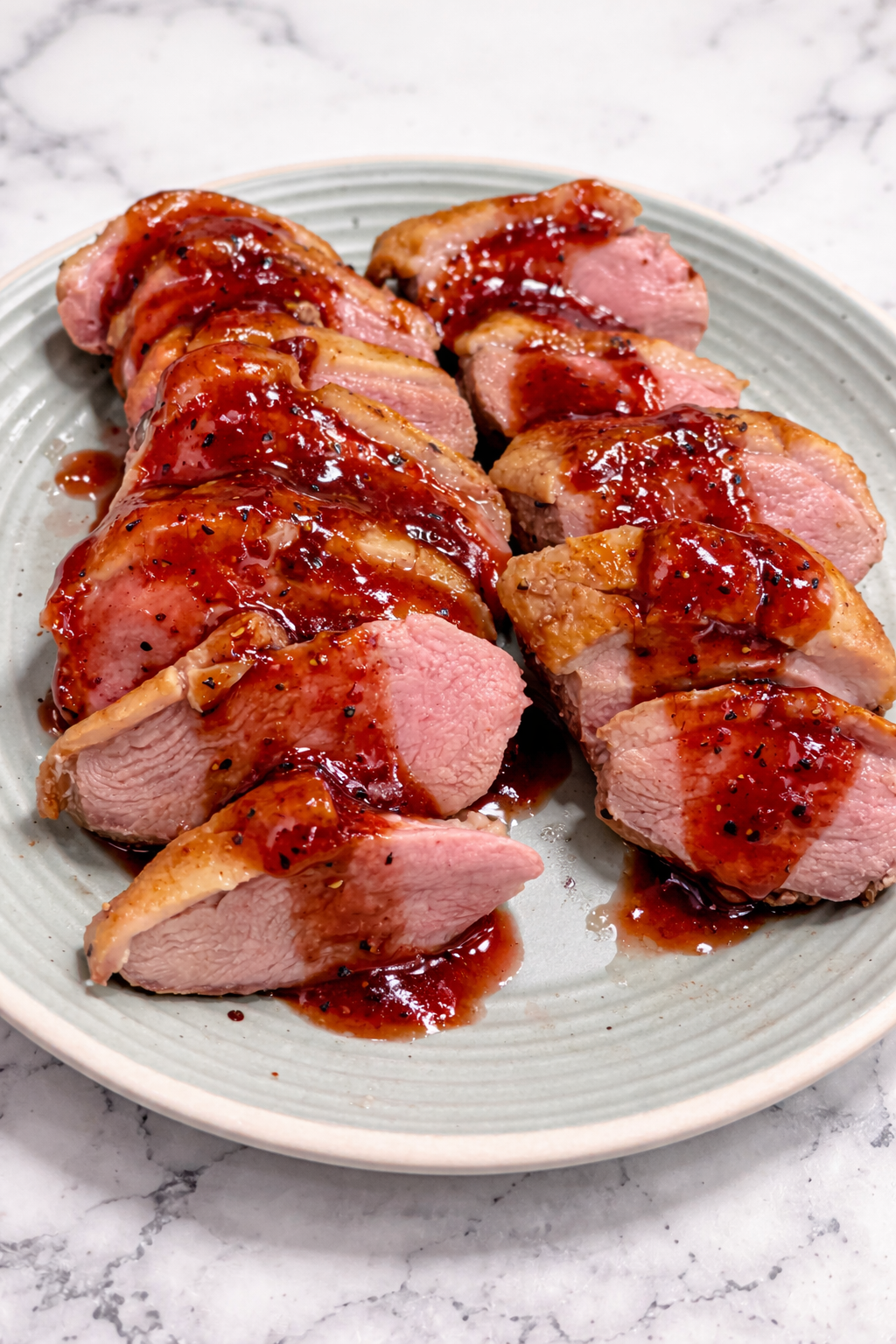 As the duck began to sizzle in the pan, I realized I hadn’t planned a sauce. Then it hit me — years ago, at a beautiful, candlelit restaurant, I had the most luscious duck breast served with a dark, fruity gastrique. It was rich, tangy, glossy, and perfectly balanced against the duck’s richness.